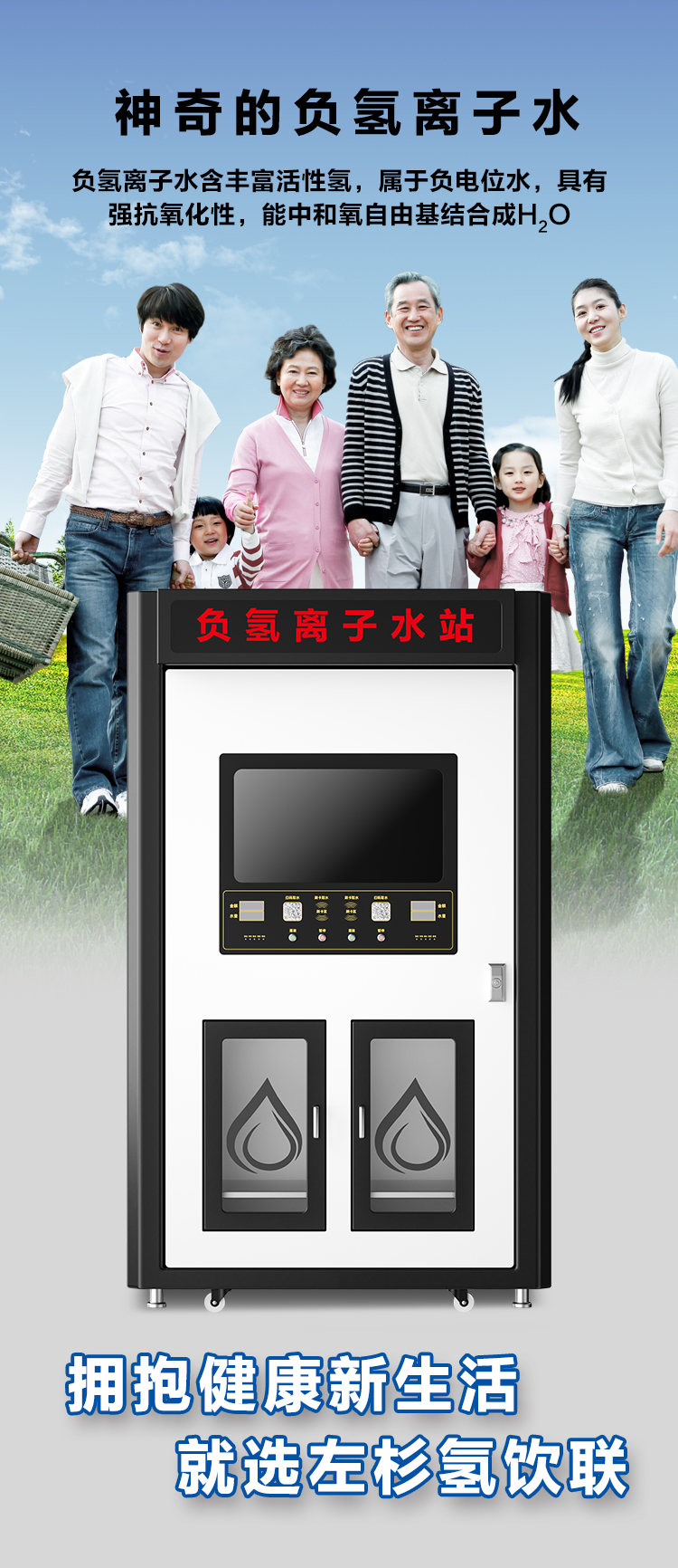 氢饮联售水机为左杉旗下的一款负氢水工程产品,售水机采用源自德国的专利技术,不但富氢水浓度高,且负氢离子水具有比富氢水更强的还原性、更高的浓度。系列产品被中国氢健康研究院评为行业首推品牌。企业依托先进的技术、专业的管理、细致的服务邀您共同进军全民负氢健康饮水工程,与您共享负氢水财富盛宴,合作共赢尽在左杉---氢饮联!